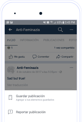 Si el mensaje es público y se encuentra en alguna de tus publicaciones o en tu muro, repórtalo:
