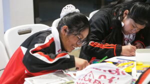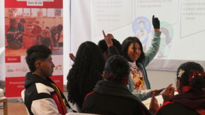 El salón se llenó desde muy temprano y ya se veían las ganas de cada estudiante de participar en este encuentro que significó también conocer a otros y otras pares de diferentes escuelas. Mientras se iban acomodando en las mesas de trabajo, se podía ver en la pantalla, “Hackea la violencia”, que no sólo fue el nombre del evento sino un llamado a la acción.