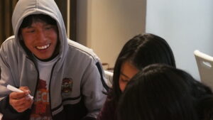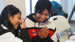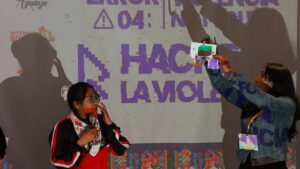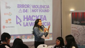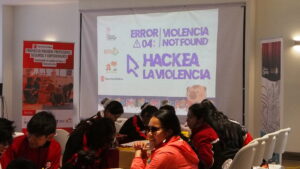 El salón se llenó desde muy temprano y ya se veían las ganas de cada estudiante de participar en este encuentro que significó también conocer a otros y otras pares de diferentes escuelas. Mientras se iban acomodando en las mesas de trabajo, se podía ver en la pantalla, “Hackea la violencia”, que no sólo fue el nombre del evento sino un llamado a la acción.